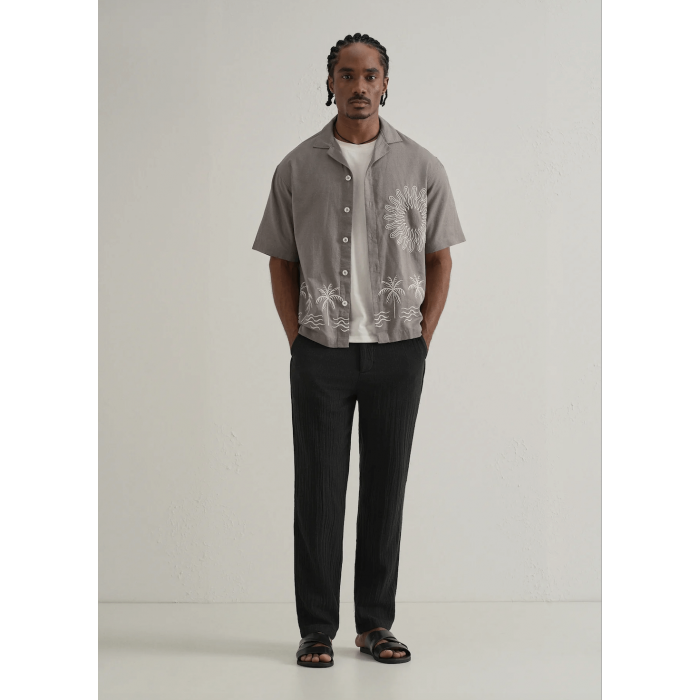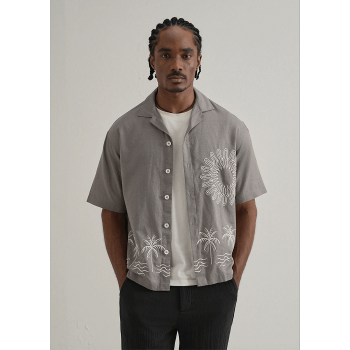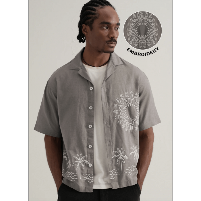 This is the perfect blend of style and comfort with our Embroidered Cuban collar Boxy fit Shirt. Crafted from cotton & linen fabric, this casual shirt features a button closure for easy wear. The standout embroidered adds a touch of elegance. Designed with a modern boxy fit and short sleeves, this shirt ensures a comfortable and trendy look.